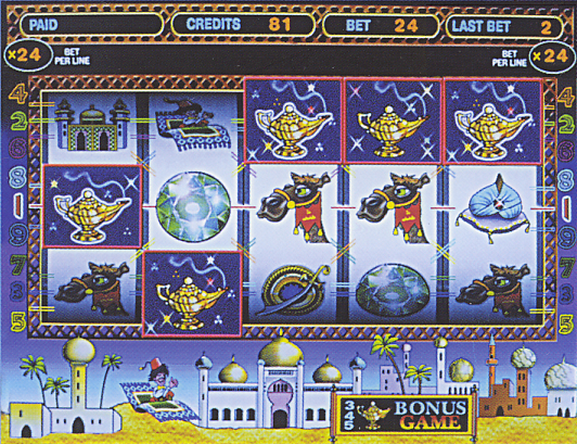 のシンボルが3つ以上でたら、ボーナスゲームに入りジニ−が現れます。